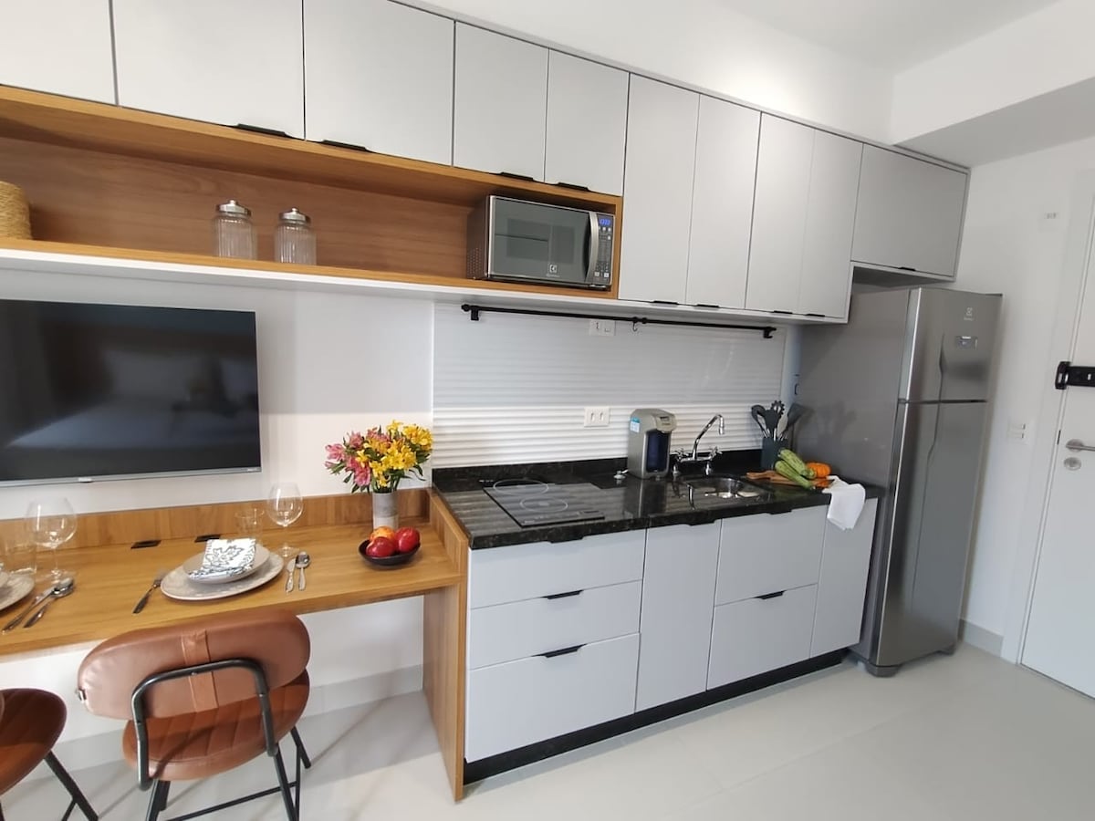 New, cozy, fully equipped studio. Excellent quality Wi-Fi network. Safe region, with the caution that should be exercised in large cities, family-friendly, with all services nearby. 300 meters from Santa Cruz metro station and Santa Cruz metro shopping mall. 24-hour parking nearby. 24-hour concierge through facial biometrics. Close to the health center of São Paulo Hospital. Excellent area for hiking, many options of restaurants, cinema, theater, …