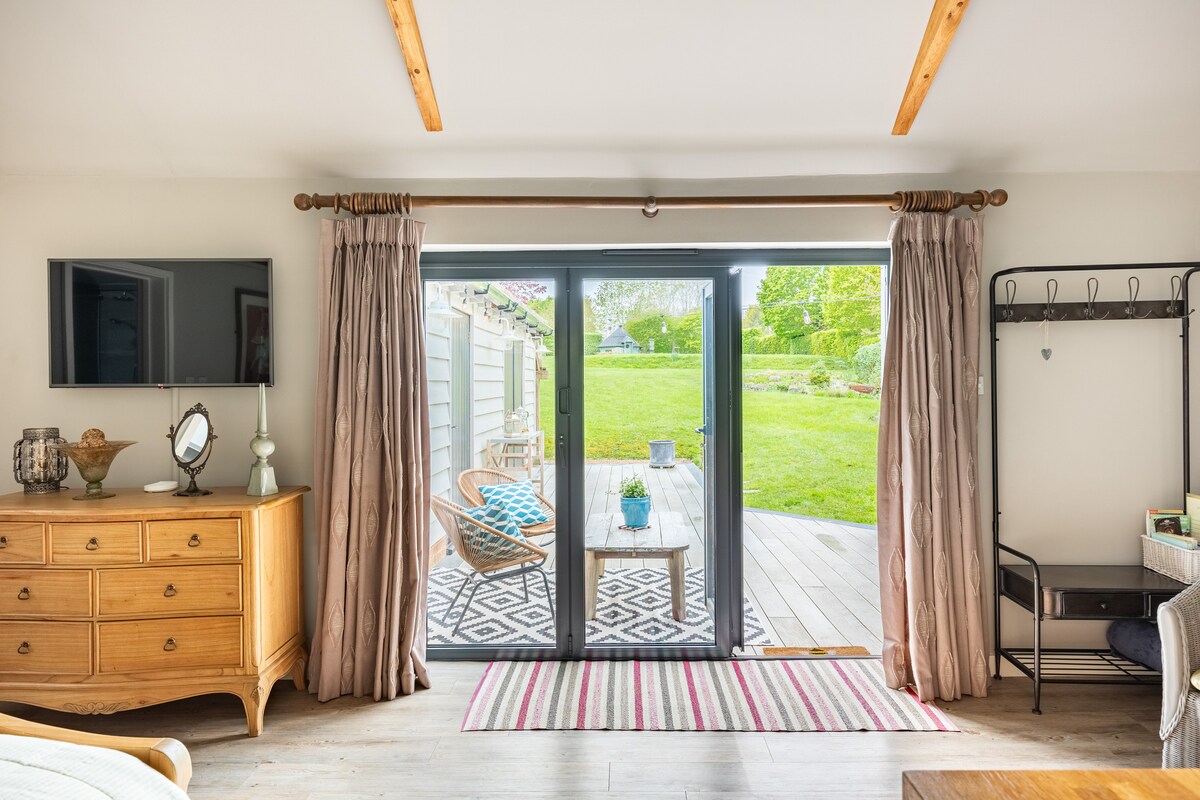 Delightful 1 bedroom detached studio with private entrance and onsite parking. Character, spacious open plan living, beautifully furnished, vaulted ceilings and large walk-in shower room. Outside seating area with lovely views over main garden. Ideal for a relaxing break with local walks and renowned country pub less than a 10 min walk. Brightwell Baldwin is a small hamlet close to the market and historic town of Watlington. Henley-on-Thames and Oxford City Centre are a short drive away.