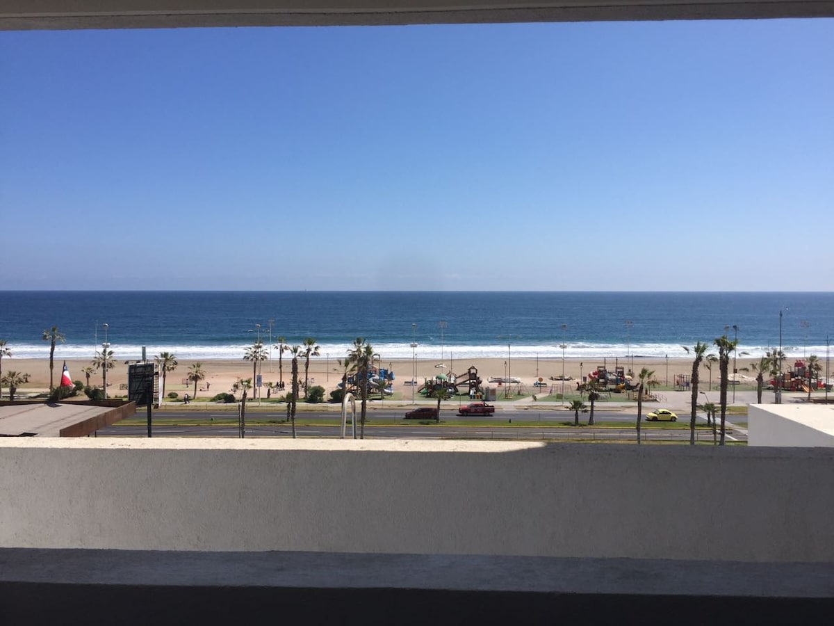 Nice and bright apartment with an unbeatable view on the front line, right at the connection of Playa Cavancha and Playa Brava de Iquique, you can enjoy a comfortable stay, with nearby tourist places, within walking distance you can find restaurants, pub, supermarkets, service stations, cafes, etc. A very nice place, with parking included, equipped for a family of 5.