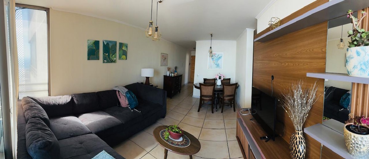 Beautiful apartment with a privileged view of Cavancha Bay. In just a 5-minute walk you can reach it or Playa Brava on the south side. Going down from the building you will find the best bars and restaurants in the city. Close to Jumbo Supermarket, Mall Plaza, and banks. The apartment is fully equipped: -European King size bed - A hydromassage tub -Fiber Optic WiFi Internet -Sofa bed with mattress -Terrace -American Kitchen -Private covered parking