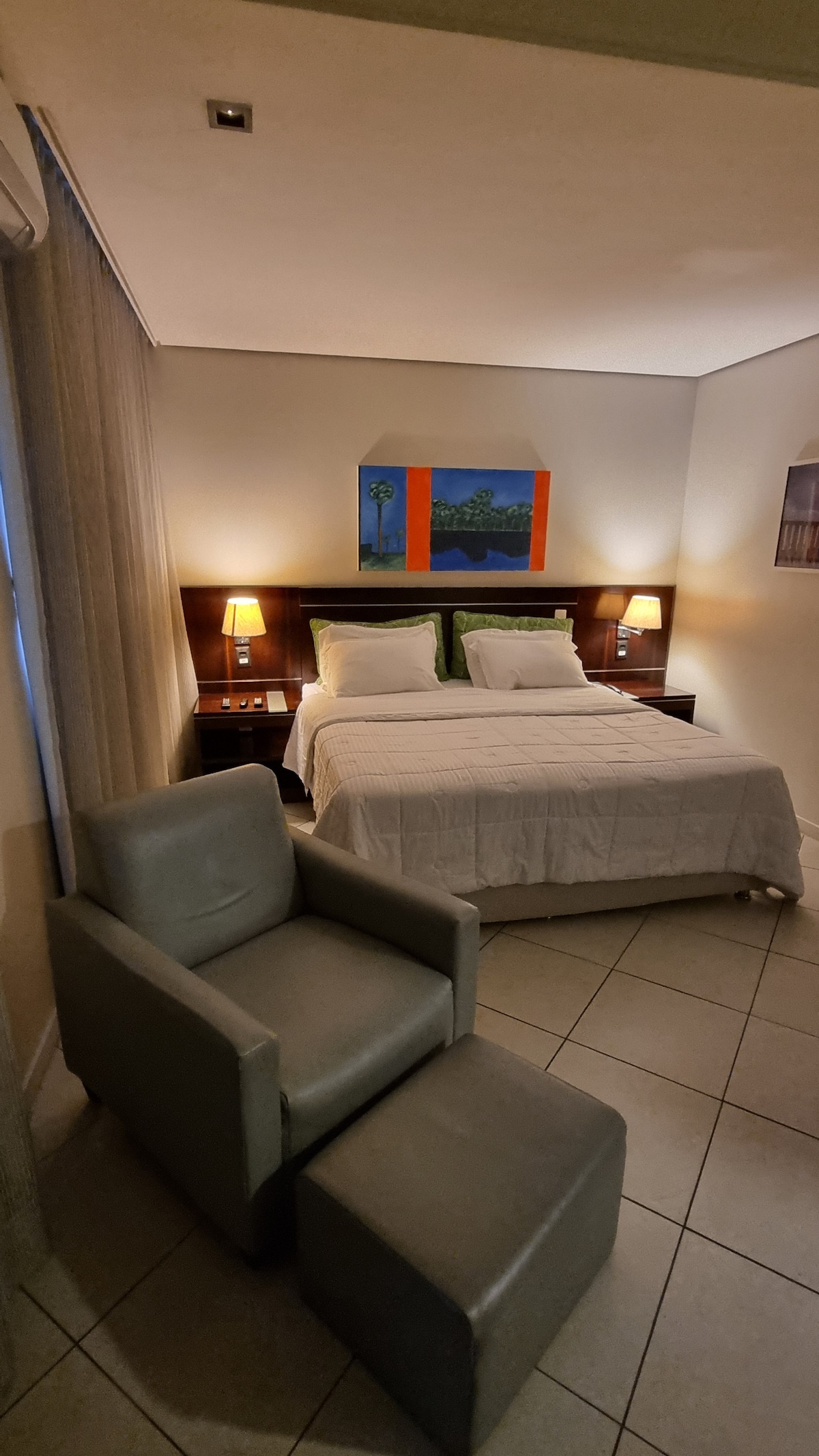 Enjoy an unforgettable experience in Manaus by staying in an exclusive apartment at the Tropical Executive Hotel, with a private gourmet balcony and a breathtaking view of the sunset over the Rio Negro. A spectacle of nature every day, in the comfort of your space! Apartment Highlights: Gourmet balcony Panoramic view of the Rio Negro Cozy suite with queen-size bed and air conditioning TV Sofa bed Microwave, refrigerator and utensils Complete trousseau and impeccable cleaning