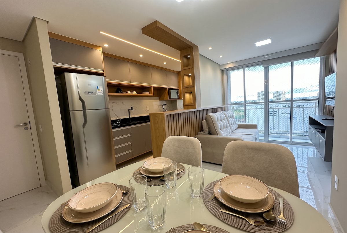 Welcome to your little corner in Parque Mosaico! Planned neighborhood, with easy access to shops, services and main roads of Manaus. It's perfect for couples, small families, or business trips: ✨ 1 bedroom with double bed, air conditioning and wardrobe ✨ Living room with sofa bed for extra guests. TV and Wi-Fi ✨ Full kitchen ✨ Well-distributed, bright and comfortable spaces. condominium with leisure areas, elevator and family atmosphere, to make you feel safe and welcome.
