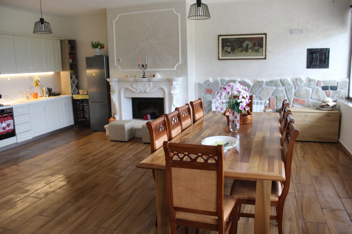 Great apartment at the heart of Tirana, with great views, natural lighting and with a spacious Terrace upstairs that you can view the city (during night the sky is magical). A modern design with a touch of wooden warmth and spacious rooms. Located at just a 4 minute walk from center and with connection through all of Tirana's main streets makes this appartment a good choice for guests that want to experience the city's cultural attractions, museums, parks, restaurants and Tiranas nightlife.