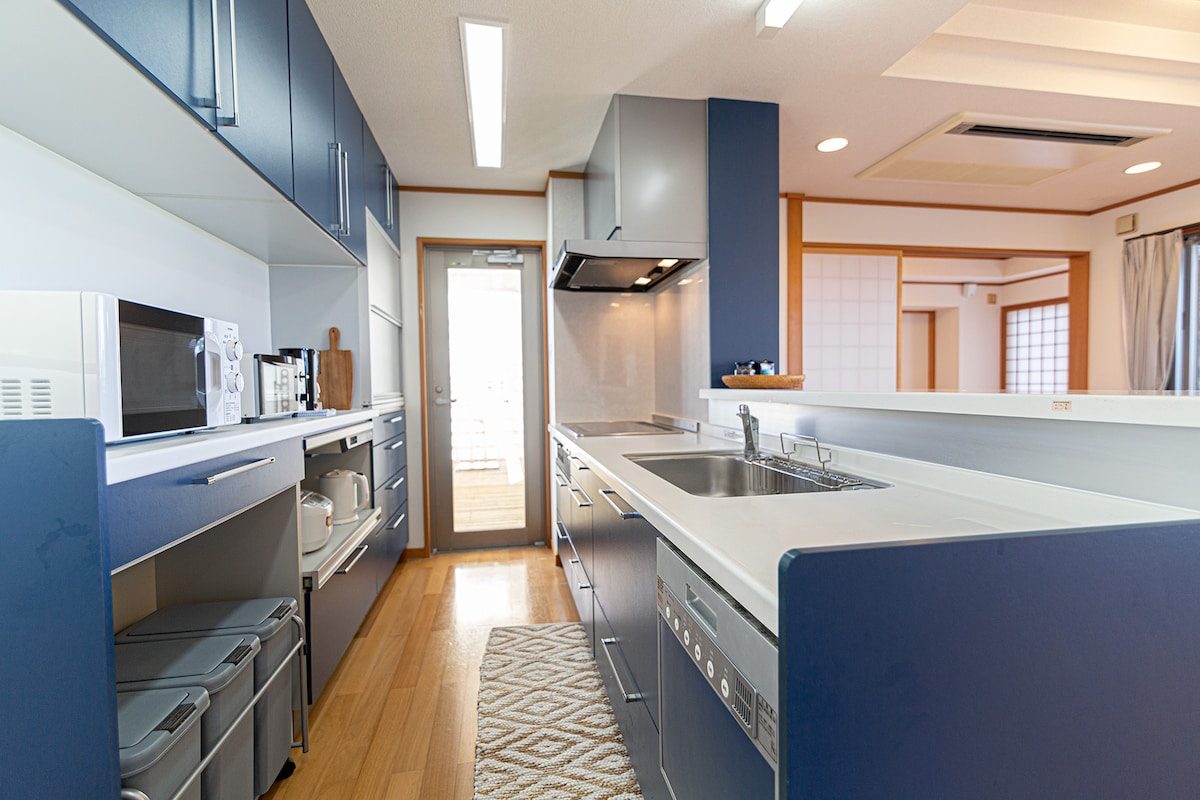 This is a room on the second floor of an apartment building right in front of the harbor. It is a south-facing corner room with a view of the harbor from the room. The room has a drum-type fully automatic washer and dryer, a toilet with a bidet, a kitchen with a 2-burner gas stove with a grill, and a shower room, and it can accommodate long-term stays. Chromecast compatible and WiFi available. You can use various video streaming services with your own account. The building has an auto-lock, so you can feel safe when you go out. It has everything you need, and it's a stress-free environment during your stay. About 10 minutes on foot to the downtown area. One free bicycle is provided, making it relatively easy to get around without a rental car. If you come by car, we will show you a nearby free space within a 3-minute walk. * For a fee, we can also show you a parking lot about a 10-second walk from the apartment. Please ask in advance, as availability may be limited. We recommend 1 person for accommodation, but we can accommodate up to 2 people for an additional fee. If you are using it for 2 people, we will provide 1 set of futons, so please be sure to let us know at the time of booking.