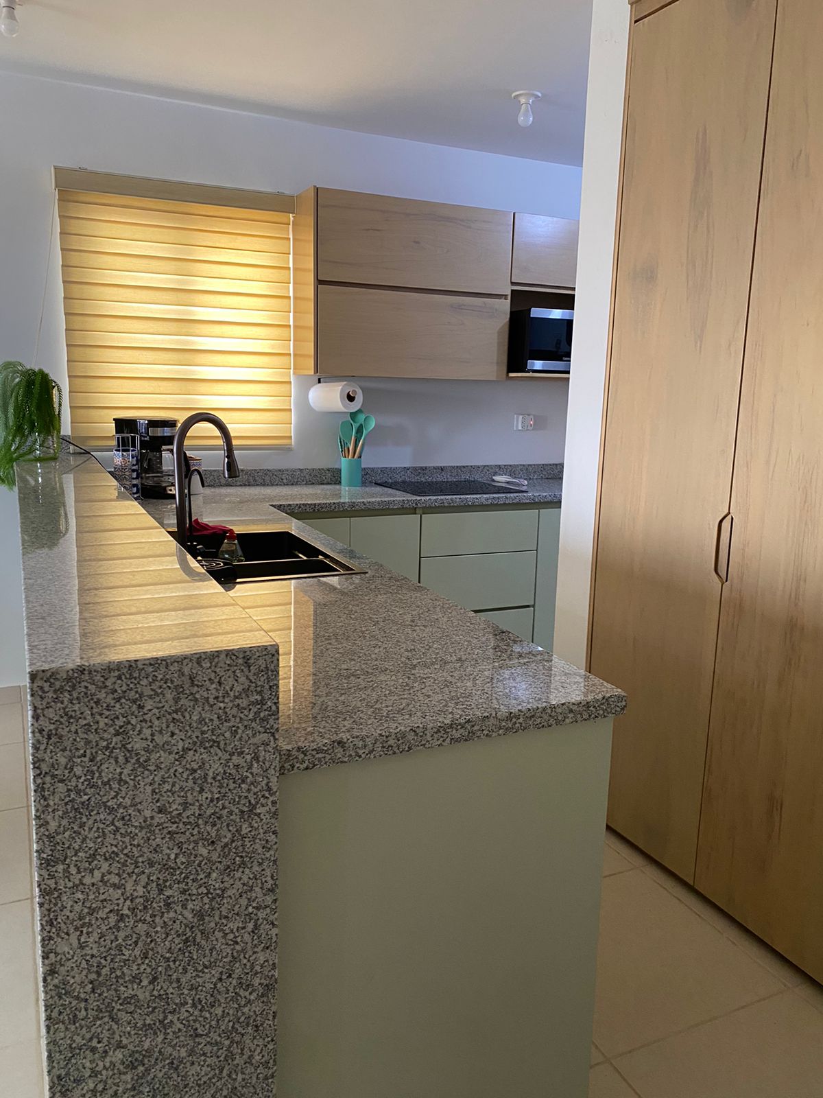 It is a completely new place, good spaces, it has necessary lighting, the rooms have their air conditioners as well as the living room, a kitchen where you can find everything you need, refrigerator, grill, microwave, and utensils. It has completely clean bath towels, sheets, pillows, all freshly laundered for your stay.