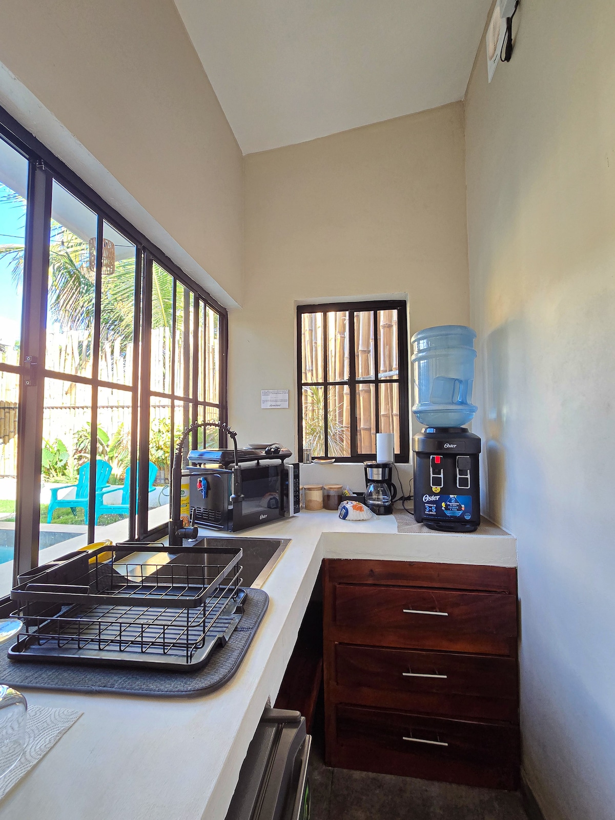🌴Relax: The perfect Bedrooms feature blackout curtains, air conditioning and comfortable bedding for a restful sleep. 🍽️Fully equipped kitchen: Perfect for preparing your favorite meals, including an oven, stove, coffee maker, utensils and basic spices. 🌊Outdoor area: Direct beach access just 15 steps away, practically at your doorstep, a shared pool, and an outdoor shower. Ideal for families and groups seeking a perfect coastal experience.