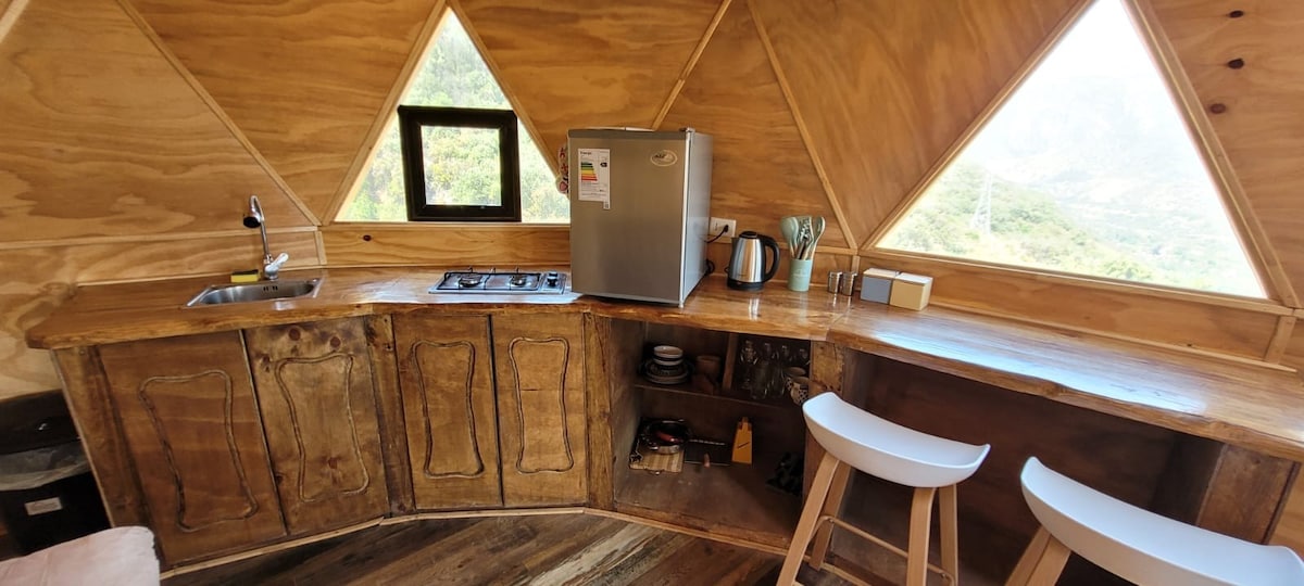 Quimsa Glamping Domo is the ideal space to reconnect with nature. Located between the mountains of the Maipo Valley and surrounded by native sclerophyllous forest, this Eco-sustainable Dome offers an unparalleled view and a Glamping experience that blends the connection with the natural environment but with the comforts of a comfortable place. Ideal for resting and relaxing, contemplating the native flora and fauna and charging yourself with the energy of the Andes Mountains.