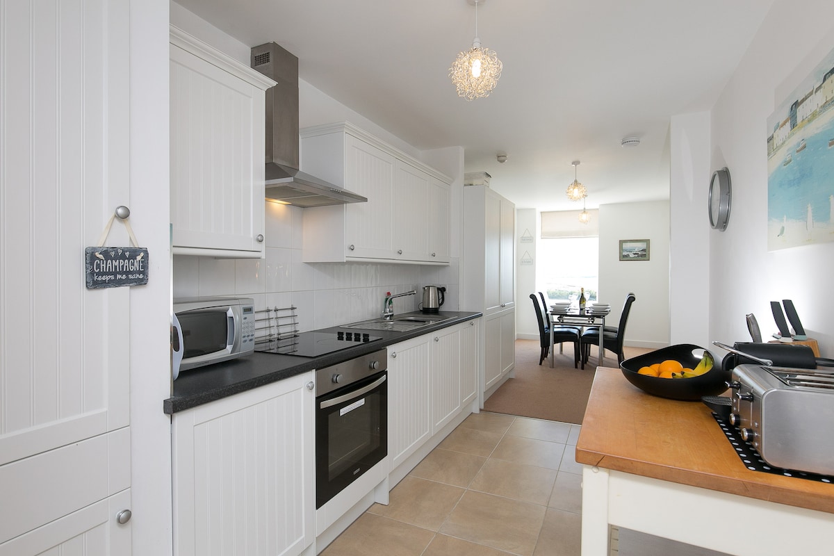 "Ar Y Tonnau - On The Waves" 🌊 High up overlooking the sea, a charming unique penthouse apartment with stunning views over the Menai Straights & Anglesey. You will have an ever changing sea view, with boats often coming & going into harbour. This is a quiet retreat, the perfect place to relax & unwind...suitable for couple's & small families. Nb. not suitable for parties, a maximum of 6 people, guests are asked to keep noise levels to a minimum especially after 10pm. Diolch/Thank you!