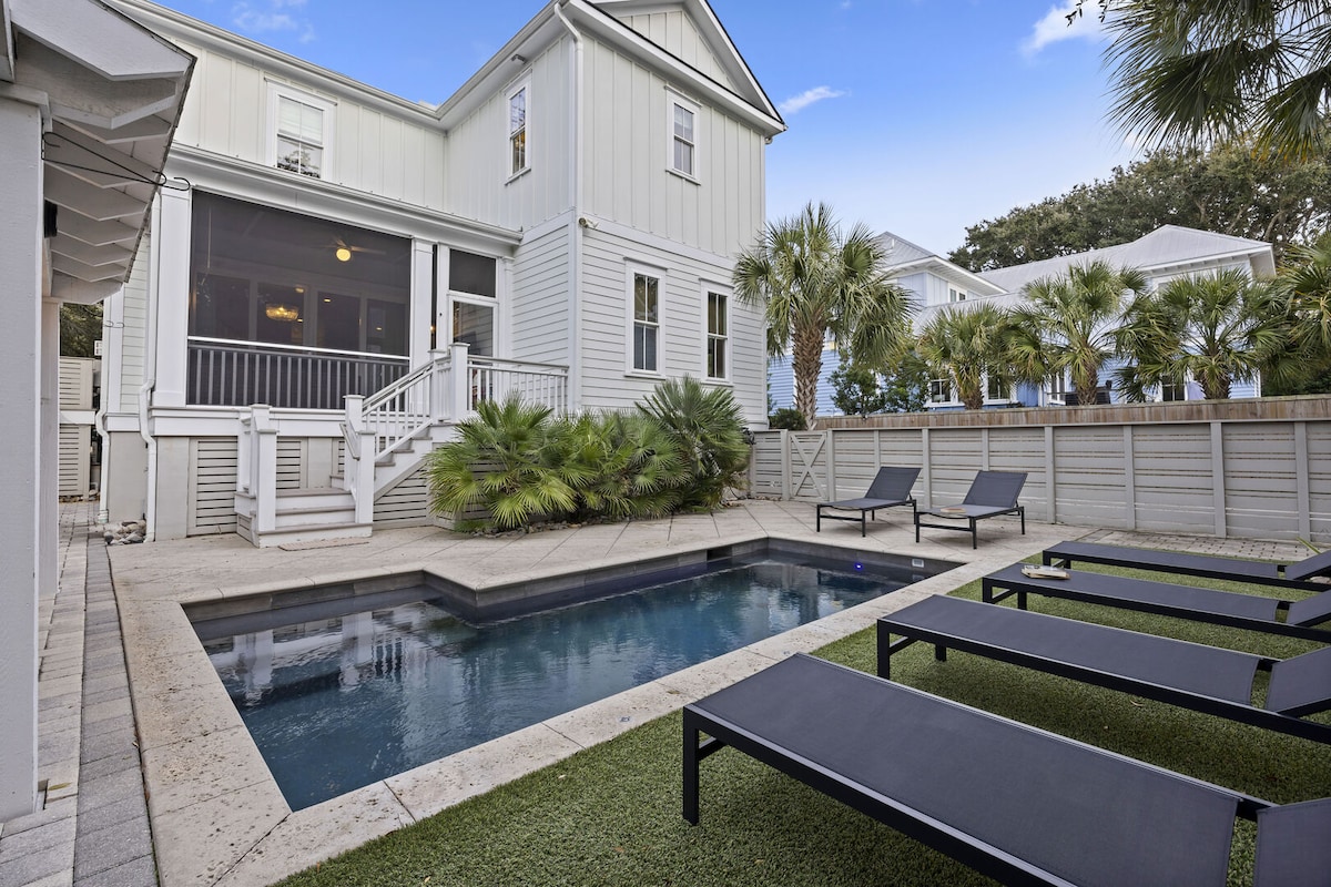 Nestled amongst greenery in Isle of Palms, this home features everything you need for a laid-back getaway. The heart of town is nearby where you’ll discover restaurants, shops, and must-try ice cream. Heat up in the midday sun before plunging into the ample pool. A short stroll is all it takes to land you at the beach. Perhaps you’ll catch a glimpse of sea turtles as you meander along the shore. Copyright © Luxury Retreats. All rights reserved.