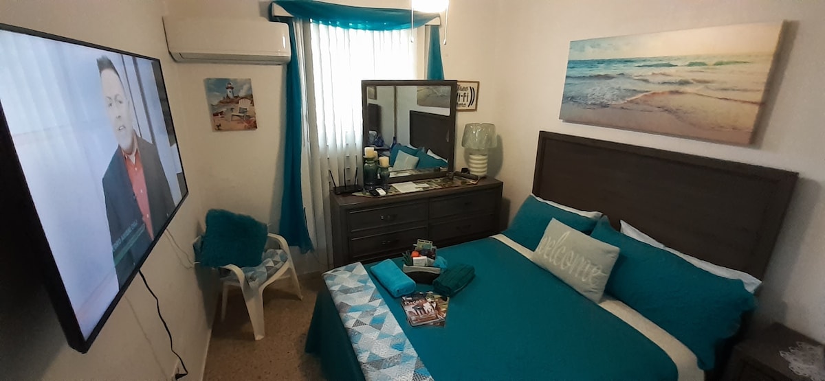 PRIVATE UNIT APARTMENT with PRIVATE ENTRANCE that's next to my home. Equipped with a powerful Central Air condition with 1 Bedroom w/QUEEN SIZE MEMORY GEL FOAM BED & Living Room sofa. Not sofa bed! Plenty of amenities to keep you comfortable with everything needed for a cozy vacation oasis! Free street parking and a 10 min. walk to Isla Verde beach, fast foods, sport bars, restaurants and Supermarket. Hotels, Casinos, Condado, Old San Juan & 6 other beaches very close by.
