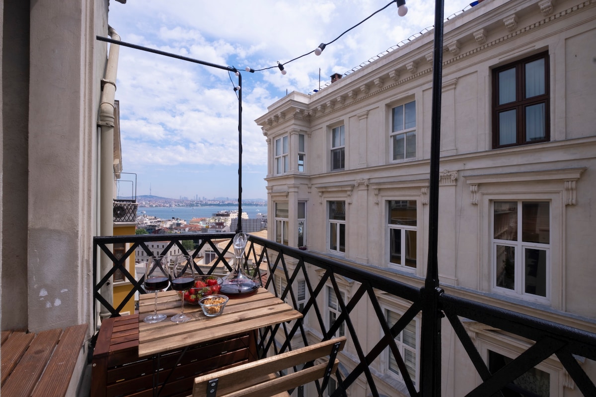 Only 5 minutes walking distance to Galataport, 10 minutes walking distance to Galata Tower, -Private terrace and barbecue area for the apartment -Studio apartment with high ceilings -It is located on the 4th floor of the building, there is no elevator -Not suitable for the elderly. Fully equipped (Air conditioning, wireless internet connection, dishwasher, automatic coffee machine, hair dryer + iron, vacuum cleaner, kitchenware and much more) -Paid parking is 30 meters away.
