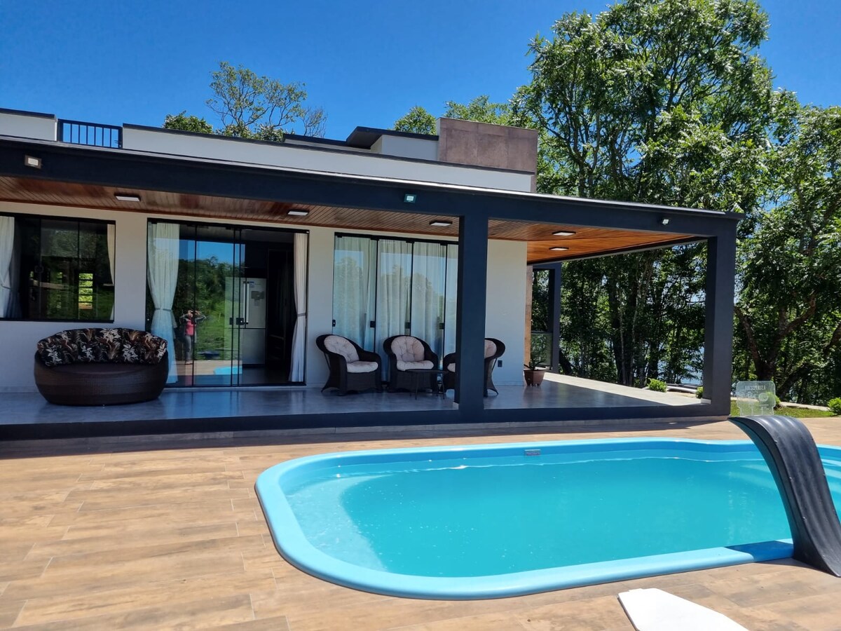 Faça uma pausa para relaxar neste oásis sereno. Casa completa localizada beira lago com vista exclusiva para o lago de Itá, fuja da realidade e relaxe nesse paraiso exclusivo, natural e seguro, totalmente privativo, lozalicado a 3 km da cidade de Itá - SC, proximo aos principais atrativos turisticos. Casa acomoda perfeitamente até 7 pessoas, area de serviço, 02 quartos, sala e cozinha,churrasqueira interna e externa, fogo de chão externo, fogão a lenha, piscina, climatizador em todos os comodos