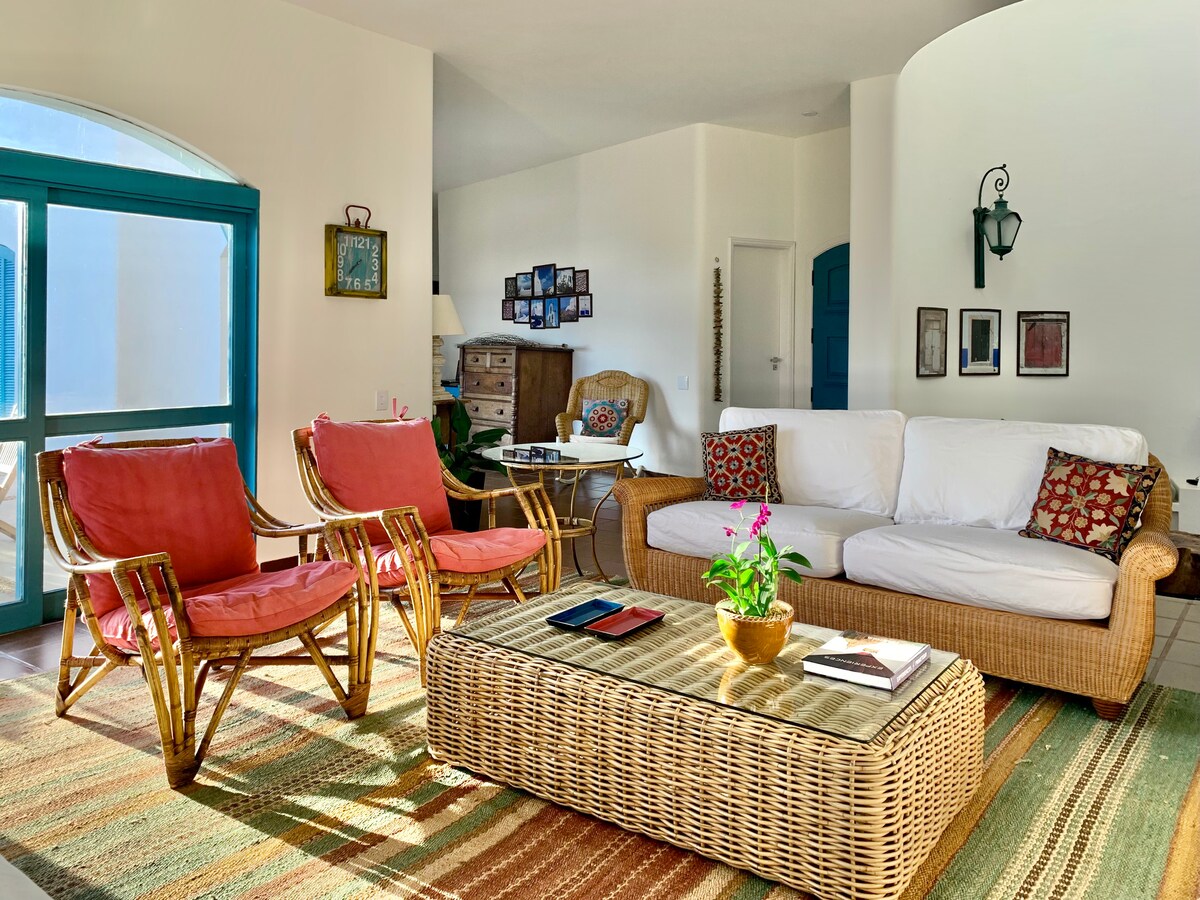 Uma vila tranquila, de frente pra água, decorada com muito estilo em meio a uma natureza esplendorosa. Um lugar simples, ainda sim sofisticado com 1000m2 de terreno. Essa deliciosa vila fica 10min de Arandu, num condomínio fechado e seguro. Um Santuário. Tem cozinha equipada, objetos de arte e louças colecionados de viagens, churrasqueira, forno a lenha, rede, caiaque, prancha p/ standup, frisbee, etc… A casa atende confortavelmente 3 casais, mas tbem é ideal para um fim de semana romântico.