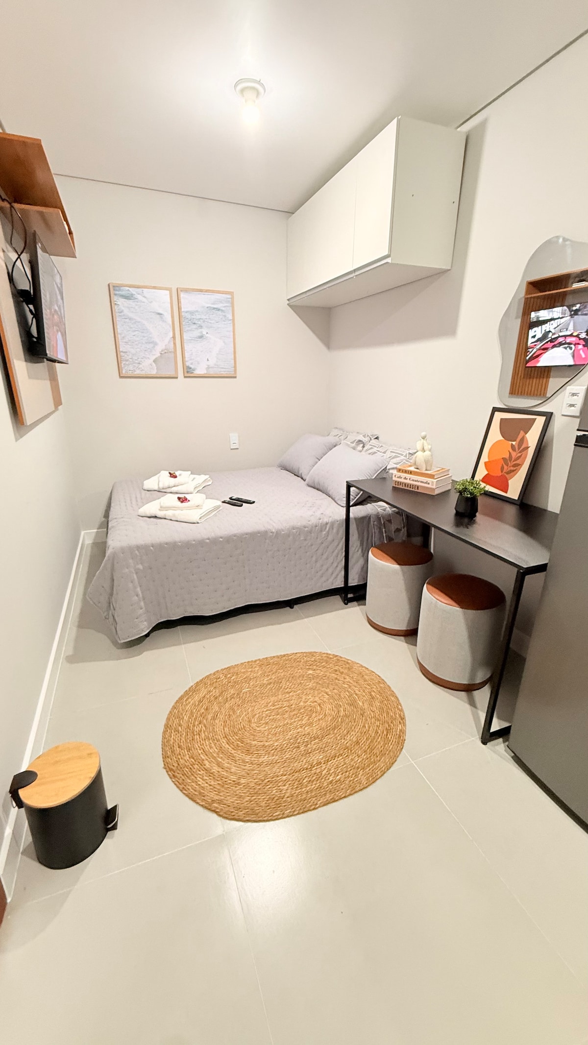 Tenha a experiência de hospedar-se em um loft completo, projetado para ser um Studio funcional e com todas as facilidades de uma casa "tradicional". O Studio conta com internet de alta velocidade, cama de casal, sofá cama, armário, geladeira, fogão cooktop elétrico, microondas e todos os utensílios para aproveitar sua estadia. A região é residencial e tranquila, próxima a um grande supermercado, farmácia e restaurantes de delivery.