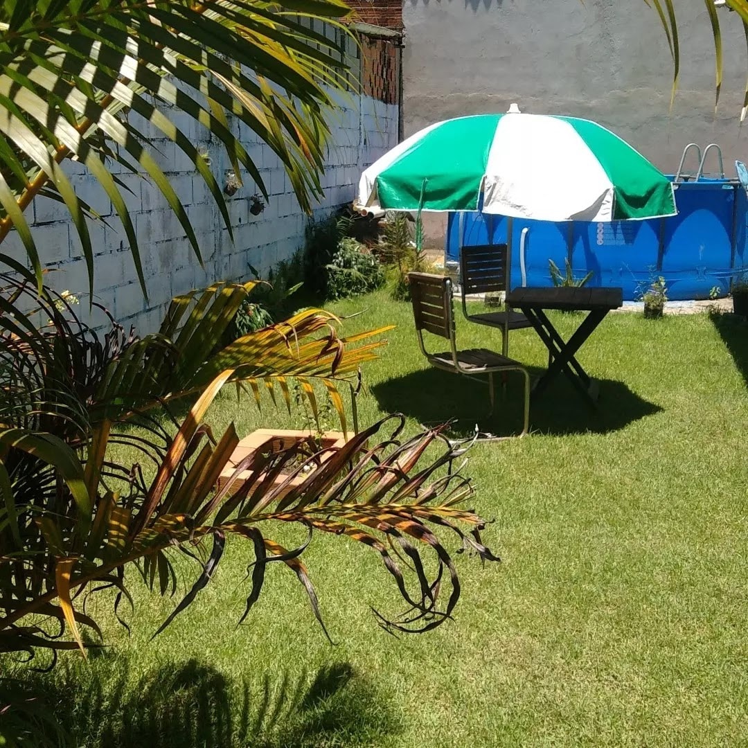 This edicule house is complete, has two suites with bunk beds, ceiling fan, full kitchen, living room, swimming pool, barbecue and game room. A spacious, covered garage. We, the owners, live in the main house in front. Guests have complete freedom and privacy in the cottage. We are close to the sea, approximately 10 minutes from the central beach of Itanhaém/SP. Quiet residential neighborhood, with nearby businesses. Extremely safe, automatic gate, with control, closed wall.