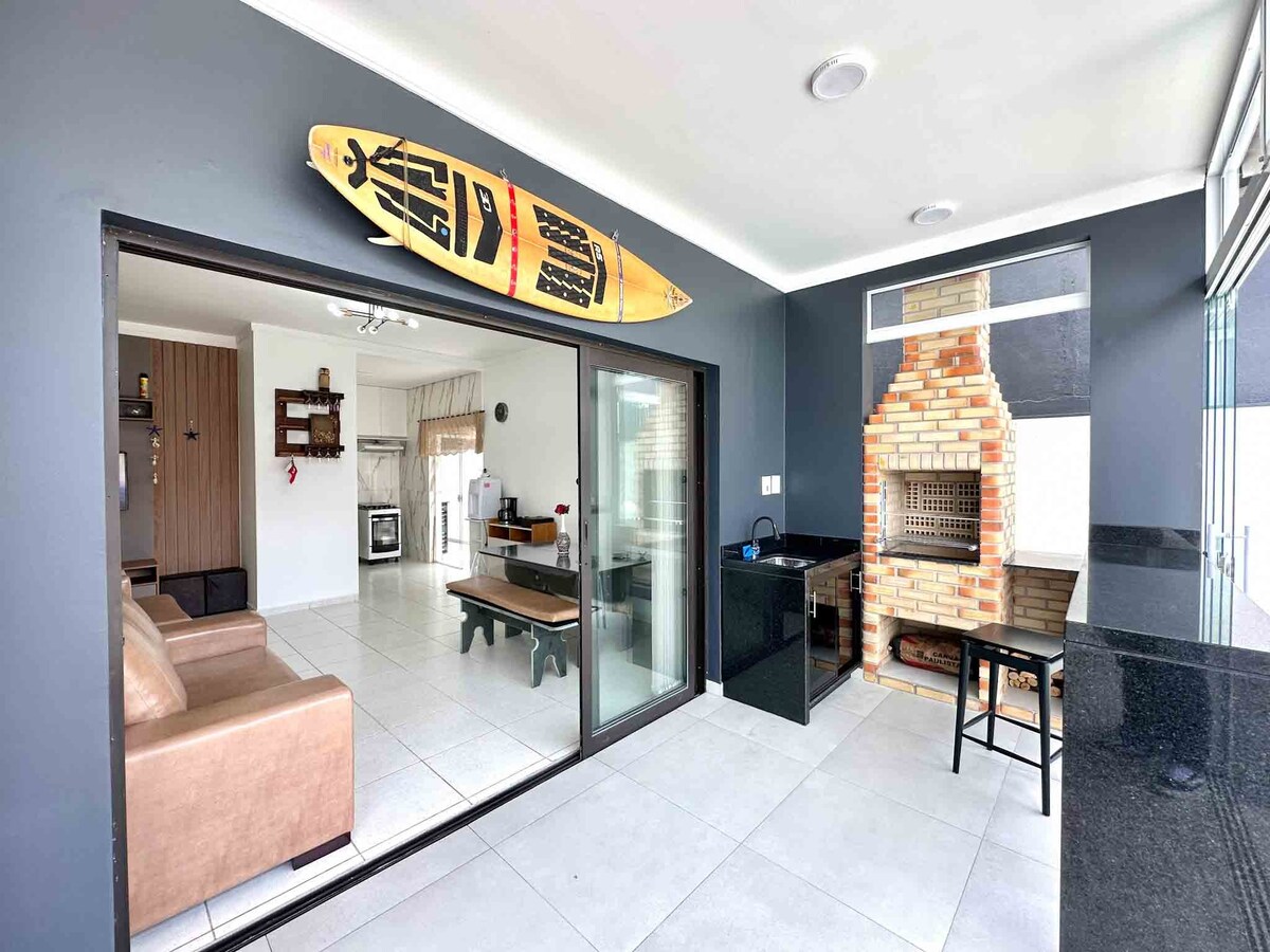 Edícula, (edícula é uma pequena construção no quintal da casa principal, nesse caso uma suíte com lavabo) área de lazer com churrasqueira, piscina e cozinha externa contando com: utensílios de cozinha básicos, liquidificador e churrasqueira. Na suíte temos um beliche, uma cama de casal, um colchão de solteiro e um de casal (acomodamos 7). Oferecemos roupa de cama e banho. Temos mercados, postos de gasolina, adegas e padaria nas proximidades. É bem tranquilo e fica perto da praia 800 metros.