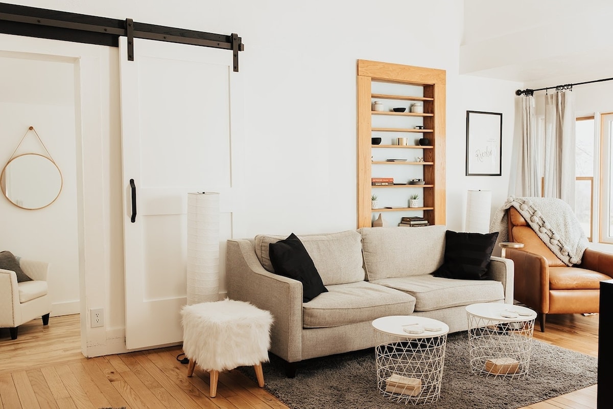 Industrial vibes in a rural setting. This 3-bedroom / 2-bathroom home is brand new and professionally designed. The home features a new kitchen, 65" TV in the living room, comfortable beds, and two work-from-home stations with dual monitors. Dog friendly but were unable to host cats or other pets. *Our newly built home is 1/2 of a side-by-side duplex. Each home is extremely quiet and has fully private indoor and outdoor space so you get the most out of your rural getaway.