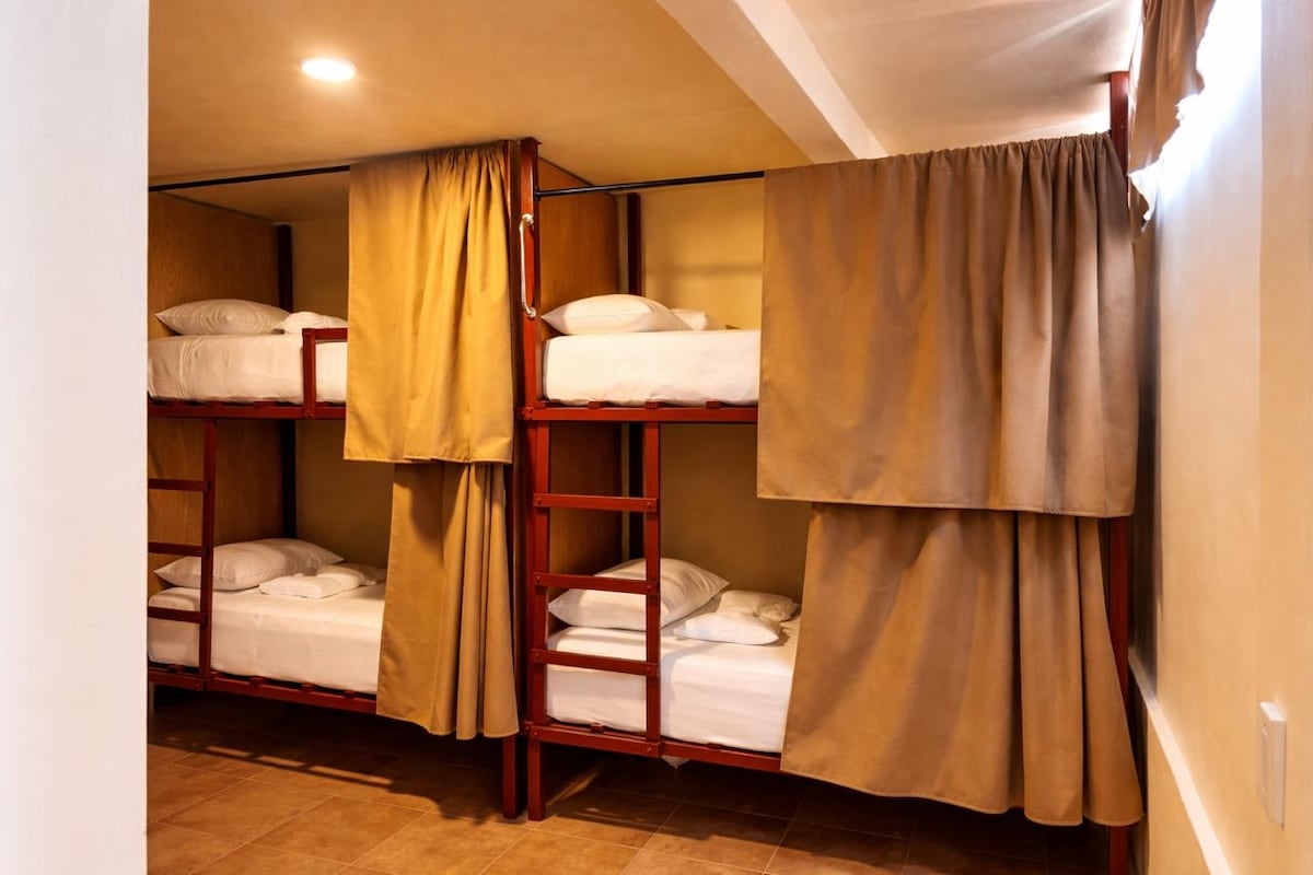 Habitación privada en Posada Casa Maakjä con capacidad para hasta 6 personas. Ideal para familias o grupos que buscan hospedarse juntos con comodidad y privacidad. Cuenta con literas individuales, baño privado dentro de la habitación, wifi y estacionamiento. Ambiente limpio y funcional para convivir sin dividir al grupo. Ubicación céntrica, espacio tranquilo y seguro. Se renta completa, no por persona.