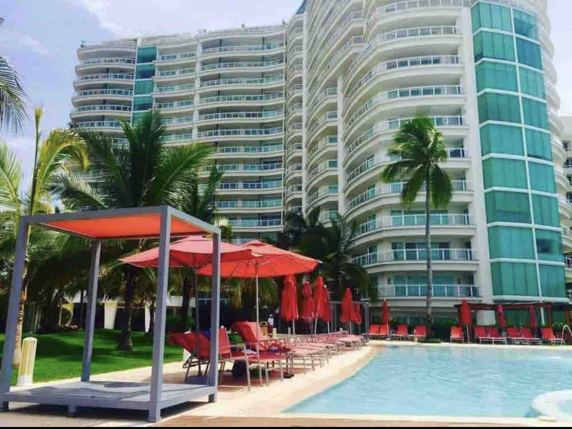 Apartment for 4 people plus babies (-3 years) with ocean view, direct access to beach with palapas🏖️, A/C❄️, Wifi📡, TV🖥️, 24/7 security🚨in the modern facilities of Bay View Grand Marina Ixtapa in the Hotel area, it has an infinity pool, playroom, jacuzzis, specialty restaurant, spa, game room (billiards, ping pong), gym🏋🏼♂️, paddle tennis court🥎, parking 🅿️, with an excellent location in Marina Ixtapa near shops, restaurants, supermarkets, etc.