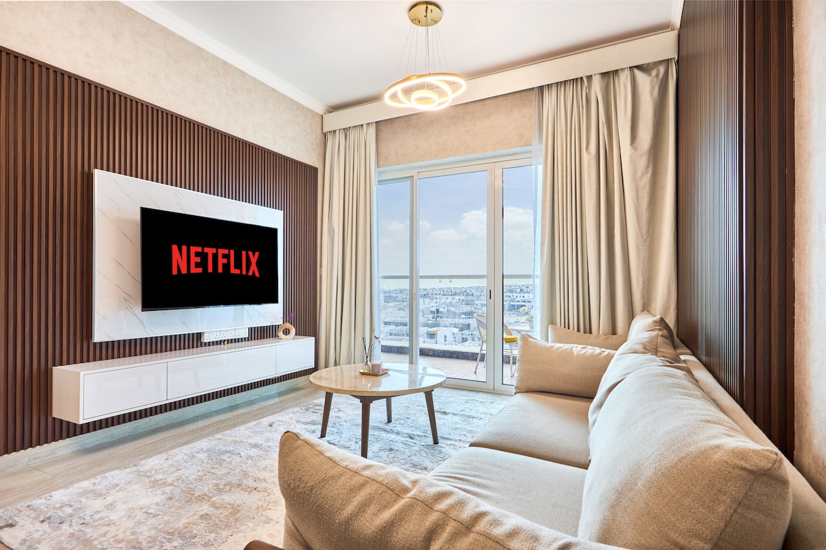 Experience beachfront living at Grand Bleu Tower on Dubai’s exclusive Emaar Beachfront. This stylish 1BR offers breathtaking views of the Atlantis, Palm Jumeirah and Arabian Sea — stunning by day, mesmerizing at sunset, and sparkling at night. Unwind by the infinity pool, relax on the private beach, or enjoy the calm from your balcony. Designed for comfort and elegance, it’s the perfect setting for an unforgettable Dubai stay.