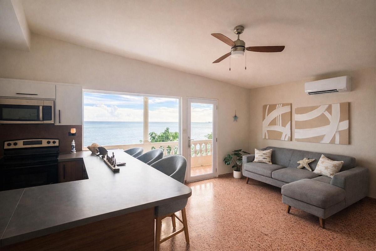 Welcome to our cozy second-floor apartment at Finca Corsica! Enjoy stunning Caribbean Sea views from the balcony and the sound of waves just steps away from the beach. Equipped with WiFi, flat-screen smart TV, sofa/futon, and a water heater in the shower. Surrounded by tropical nature for a serene getaway.