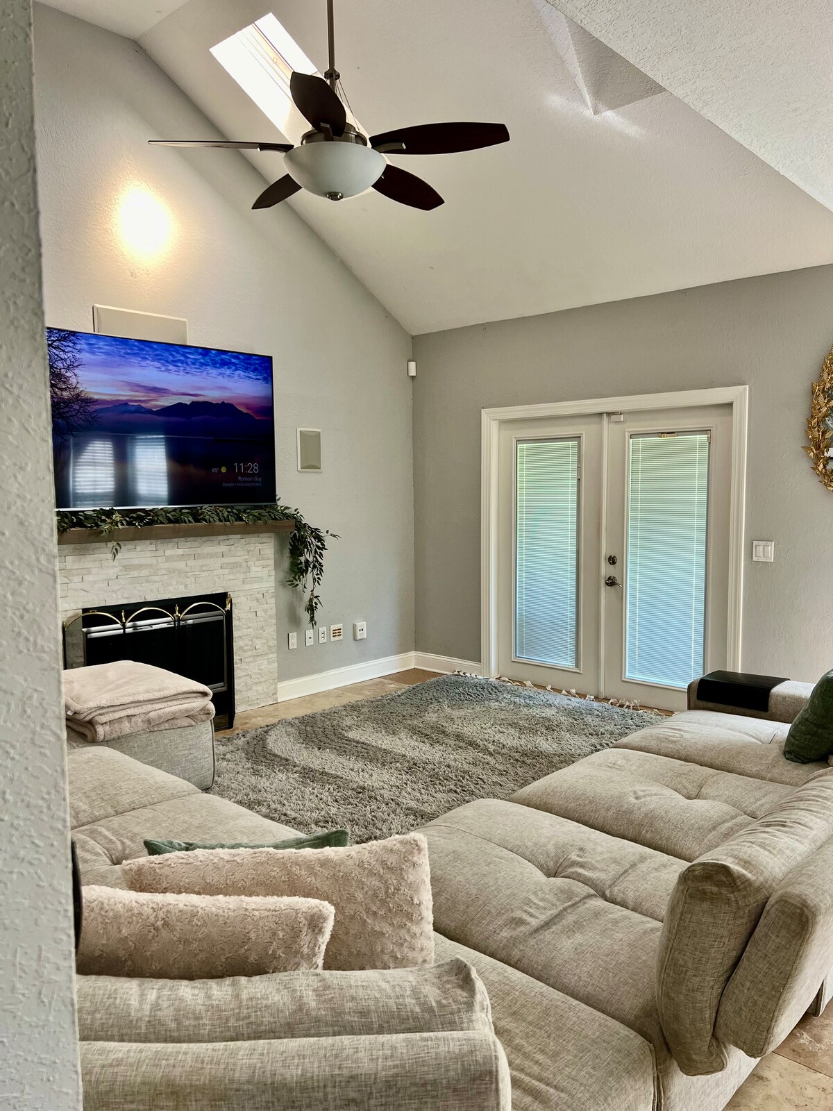 Experience relaxed luxury in this spacious 4BR retreat featuring a private solar-heated pool, elegant British-inspired décor, and soaring 10-ft ceilings. Designed for comfort and style, the home offers both refined touches and the space families need to unwind. Enjoy smart TVs in every room, fast Wi-Fi, a fenced backyard, hammock lounge, and poolside grill. Perfect for elevated escapes or family getaways. Pool is solar-heated; temperature varies with weather and may be cooler in colder months.