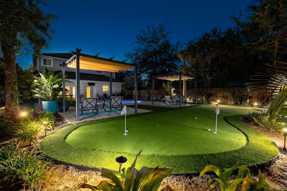 Stylish Beach Home w/ Heated Pool & Putting