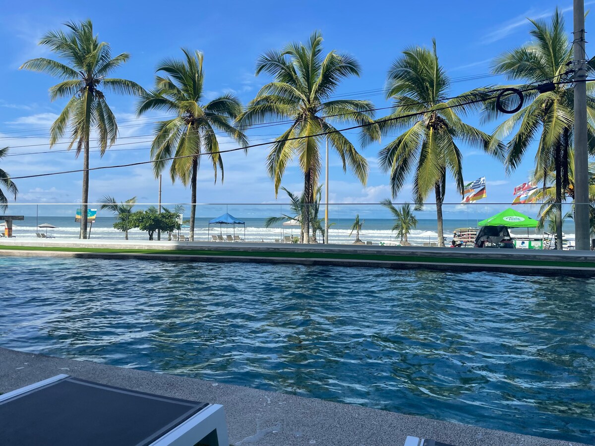 Kick back and relax in this calm, stylish beachfront condo ! Where Pura Vida meets modern and collides with nature’s tranquility. Boasting 2 beachfront pools, deck with BBQ grills, punctuated by its roof top deck; its pinnacle with breathtaking views of the Pacific Ocean. Dive into our zen inspired 2 BR 2 bath condo with a spread of turfed balconies-ocean views to rise w/ the sun or have dinner at sunset. Stay healthy w/ a full fitness center … all this awaits you in fun filled Jaco Beach 🏖️
