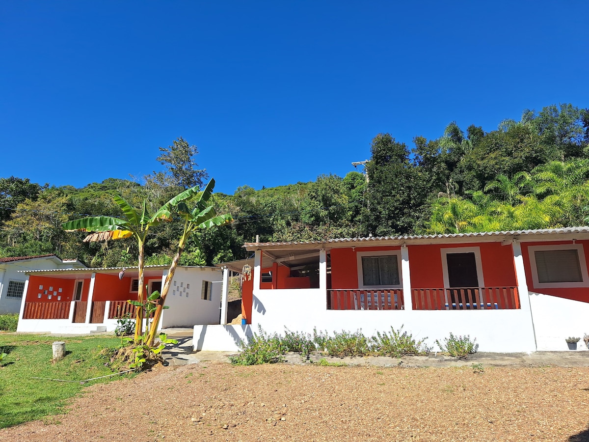 Welcome to Casinha Aconchegante! Your space in Jacupiranga (BR-116), in Vale do Ribeira. Our house is the perfect getaway for those seeking tranquility. An ideal accommodation for 2 people, equipped with a new double bed, split inverter air conditioning, smart TV, stove, minibar, sofa, table, hammock and utensils. Explore the natural beauty of the region, including beaches, waterfalls, and caves. Book now and enjoy local hospitality. We're 2 km from the highway. We look forward to seeing you ♥
