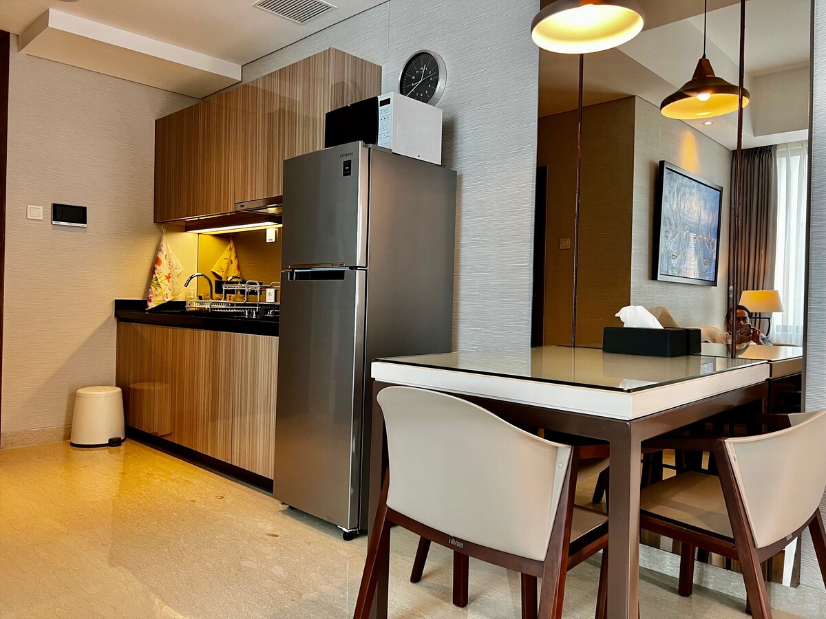Airbnb with a Hotel Feel! CityView, High-Floor 36m2 studio, with balcony, 15-min walk to MRT Benhil, located in Bendungan Hilir, Central Jakarta. - Self Check-in 2.30PM, Check-Out 12PM! - FREE Access to Pool, Gym, Sauna - King Size Bed, 1Pk AC, 50" Smart TV, Fridge, Microwave, Washing Machine, Cloth Steamer. - 📶FAST WIFI 100MBPS!!! - FREE SHUTTLE to Fresh Market - This Studio Unit Capacity MAX 2 people!