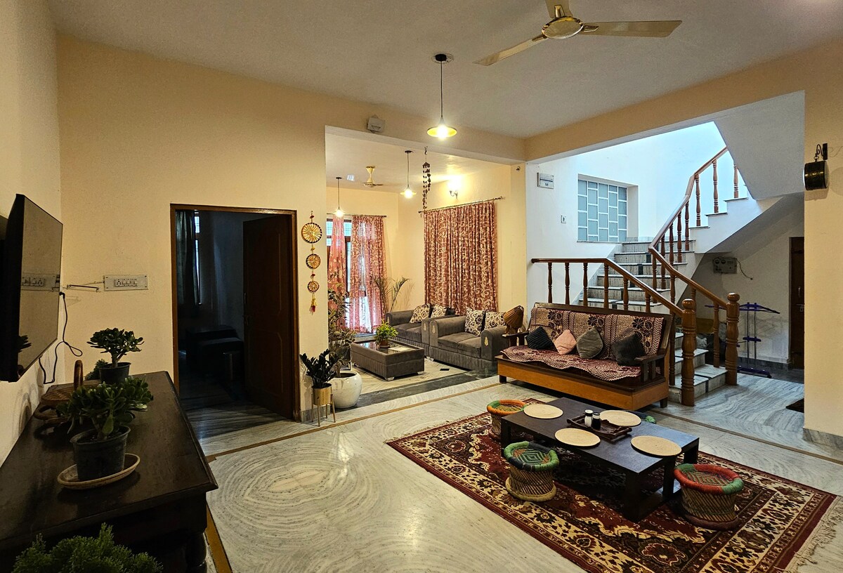 Exclusive Family space accepting only family . Located in Chitrakoot is a luxurious neighborhood. The property has this feeling that will make your stay most memorable: the guest rooms and common area have jaw-dropping views from the balcony, which is so massive. The view of the sunset and the sunrise are both visible from the property. The mattresses used in the bedroom are extremely comfortable and have European standards. The quality of sleep you will experience will make your stay worth liv