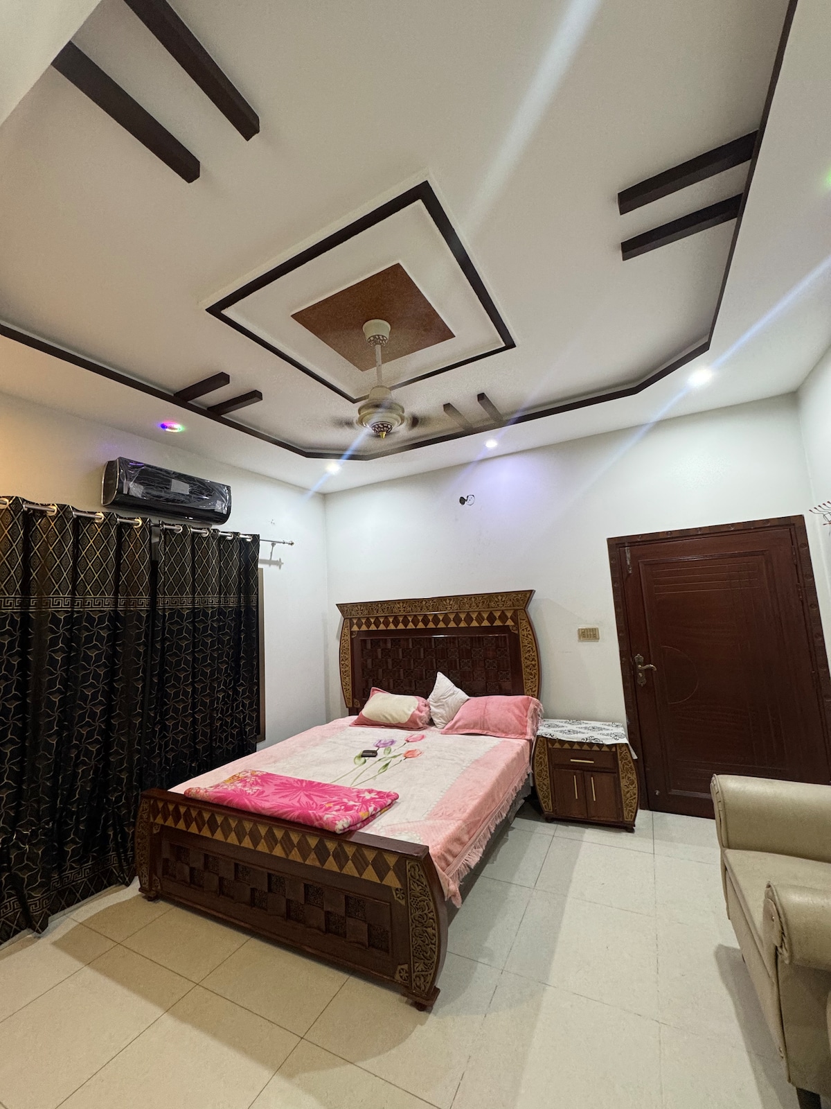 Forget your worries in this spacious and serene space. A full furnished portion of house with a tv lounge and an open kitchen which includes all basic amenities tv , refrigerator, microwave oven, stove and 2 bedrooms with attached washrooms and air conditioner installed in one bedroom.
