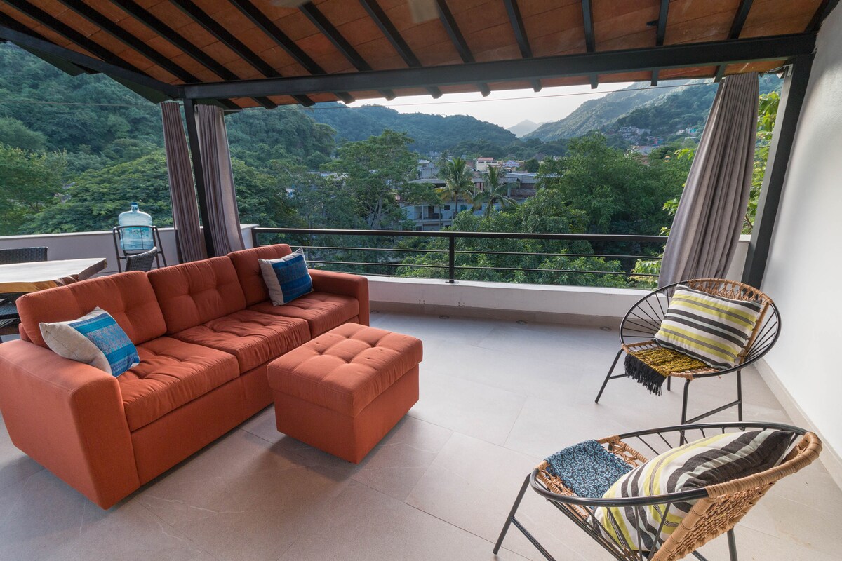 Newly remodeled home overlooking the Rio Cuale along the cobblestone streets of Zona Romantica with rental proceeds benefiting global charities. The sound of the river is the backdrop to your amazing east-facing view of the mountains from the rooftop living space adorned with local art. This 2-bedroom unit with queen beds, AC in bedrooms, and 2.5 baths occupies the 3rd and 4th floors exclusively of this home. Ample lounging space with open-air living, dining, kitchen, and a soaking tub.