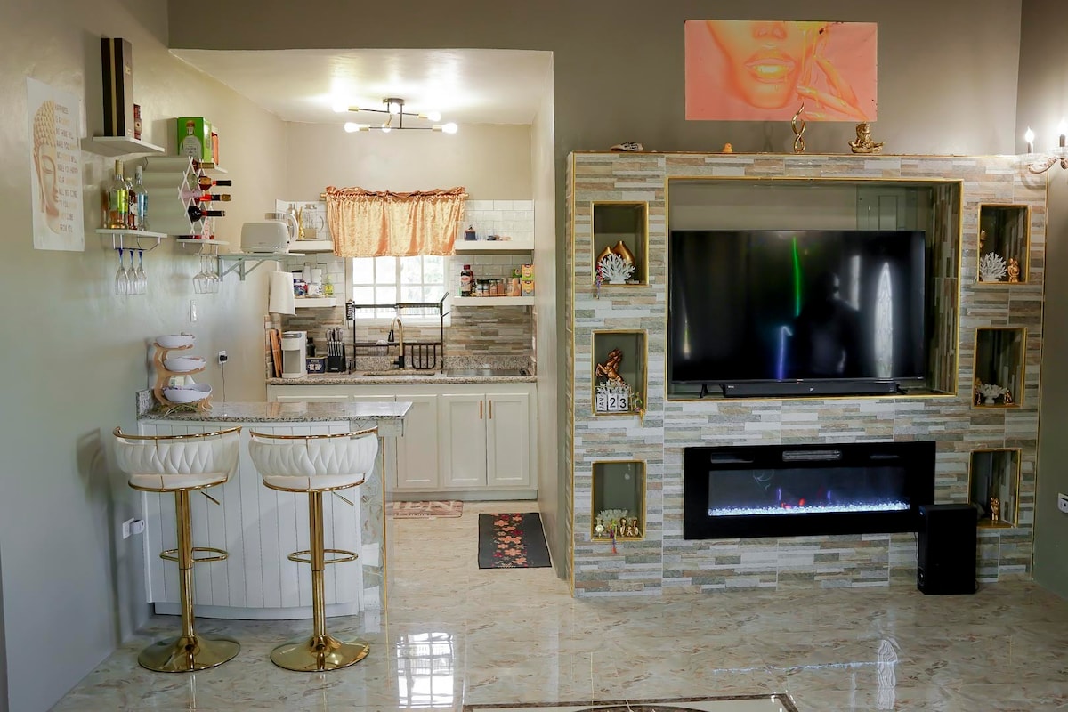 Name - AFFLUENCE This stunning luxury 1-bedroom apartment is designed for comfort and elegance, located 15 minutes from Sangster International Airport (Montego Bay Airport), with easy access to top restaurants, shopping, and entertainment. The complex features a total of 5 units, offering adequate privacy for our guests. Located only 7 minutes from Fairview shopping Centre and 10 minutes from Downtown Montego Bay and the popular Hipstrip. The beach is also 10 minutes away from your stay.