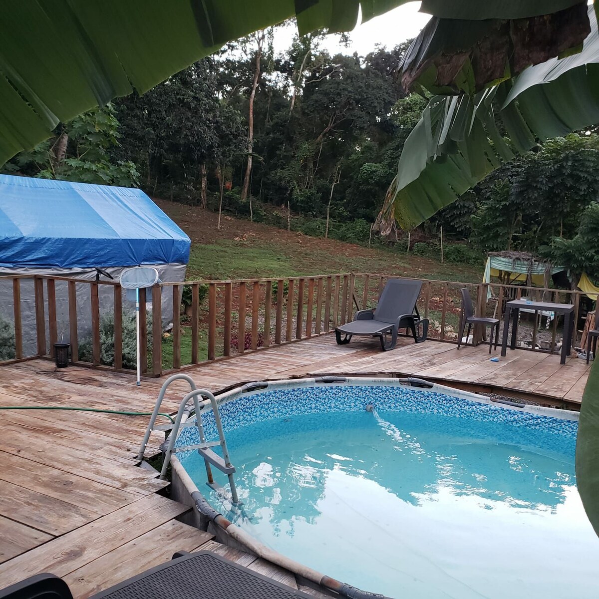 Welcome to Ubuntu Oasis in the forest, a serene Jamaican retreat 10 mins from Ocho Rios. Enjoy outdoor showers,pool, fire pits, BBQ grills, & fruit trees. The tent accommodates two people, you may bring your own tents for extra people. You'll be charged per person after 2. Our secure campsite offers 24-hour staff, security cameras and is fenched and gated.