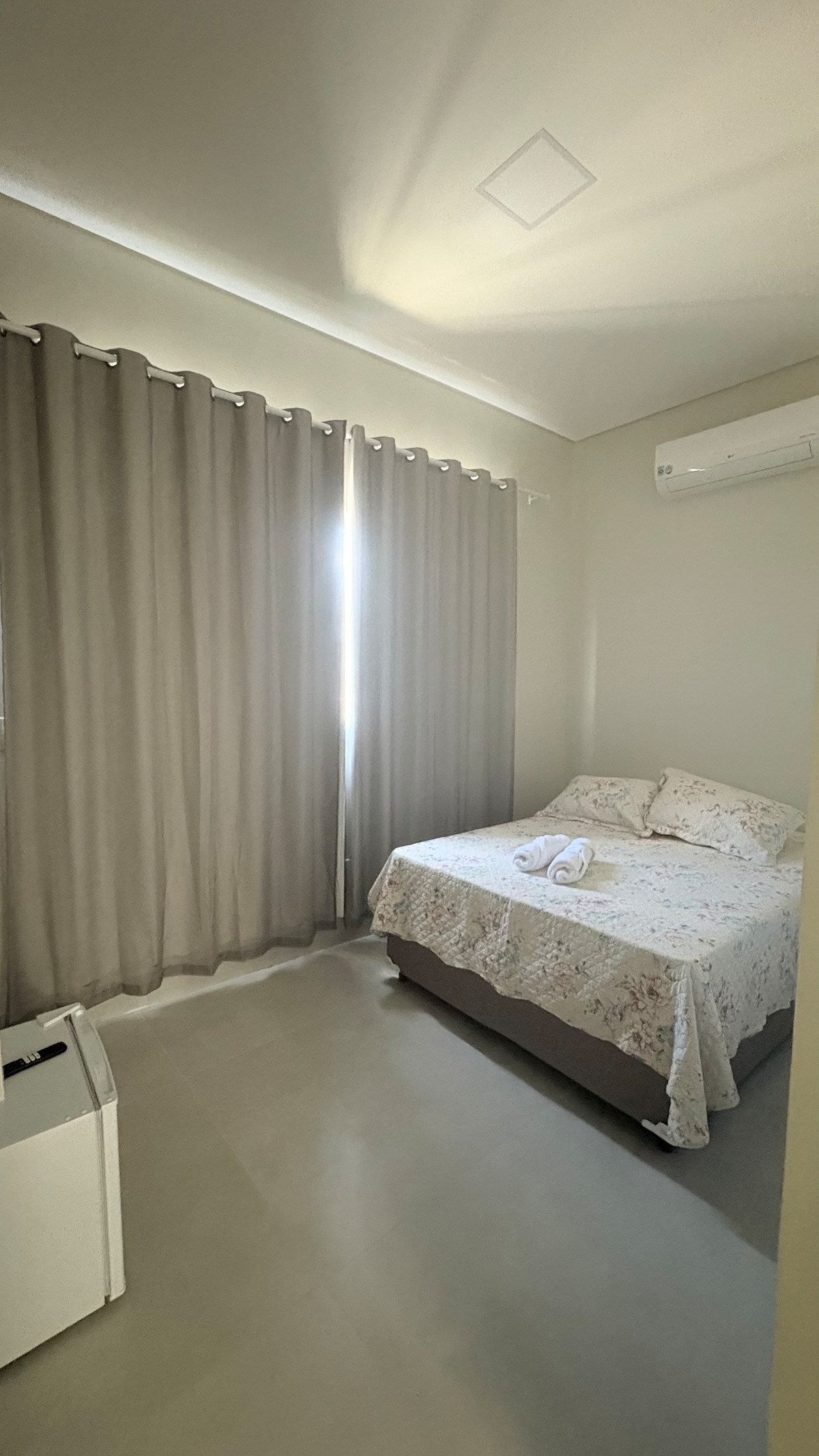 Safe and well-located place. It is in the city center, where everything is close by, it is in front of the bus station ramp, there are supermarkets, a pharmacy, a bakery, restaurants, CEASA (where the fair takes place on Saturdays), a shopping center, a hamburger shop, a pizzeria, a Sicoob bank, a gas station, etc. Functional apartments, very fresh and airy. Towels and bed linen are available. - Located on the second floor with stairs. - There is no private parking, only the bus station parking.
