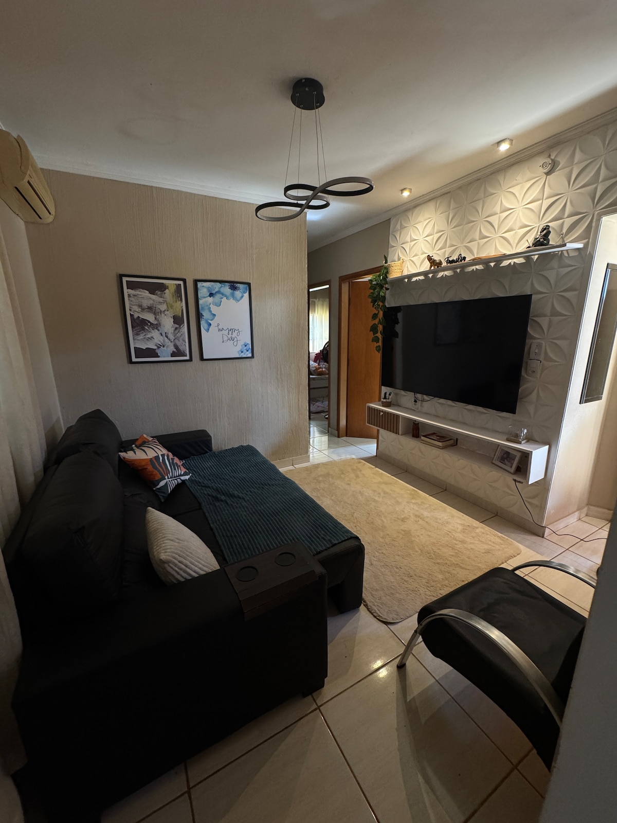 Welcome to Casa Luz. It has 2 bedrooms, each with a double bed, a portable fan in the living room, a double sofa bed, a portable air conditioner, and Wi-Fi. It can accommodate 6 guests. Close to the Alexandre Balbo and Anhanguera bus station, 13 minutes from Hospital das Clínicas, Agrishow and João Rock, nearby there is a bakery, supermarket, pharmacies and pizzeria. The house has a kitchen with a fridge, stove and utensils, and a thermos. large bathroom. a private outdoor sand with a small garage for two cars.