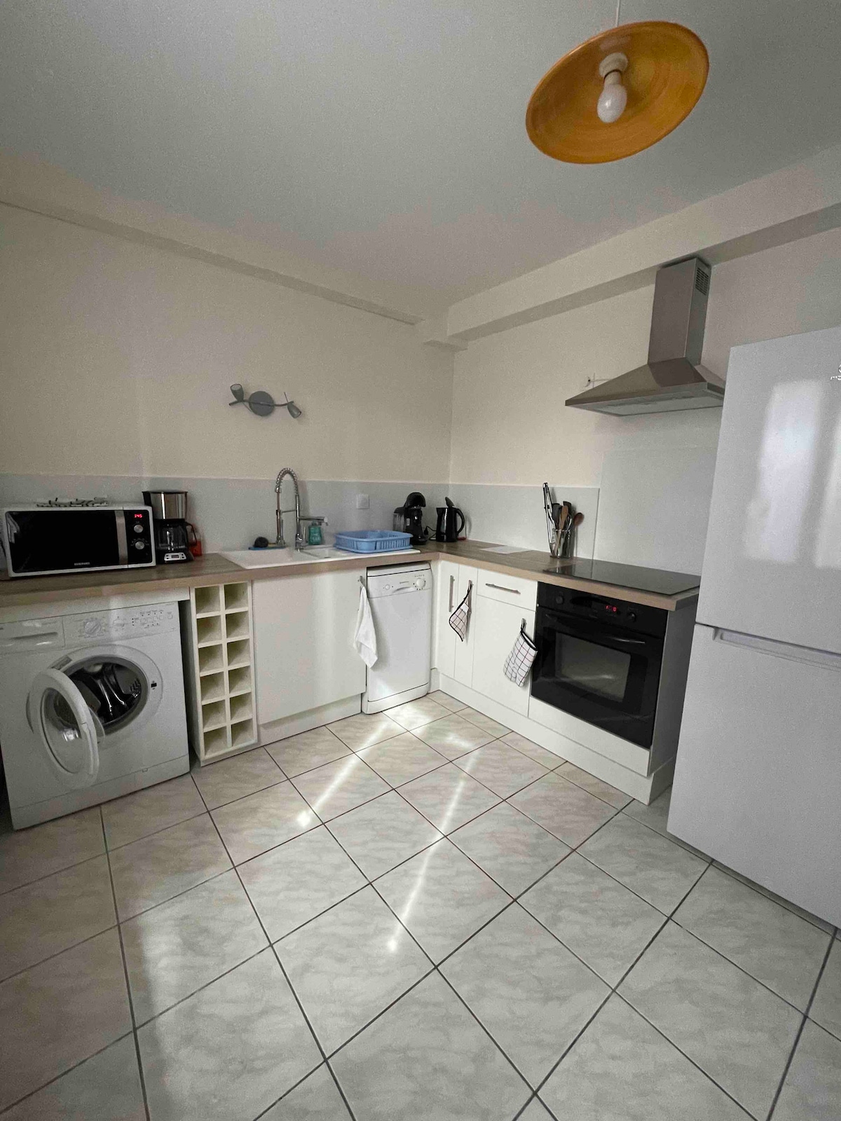 Very nice apartment, located in the center. Close to all shops: bakery, pharmacy, tobacco, U Express... Close to the banks of the Loire to enjoy beautiful walks and explore the Loire circuits by bike. Fully equipped kitchenette: microwave/grill, fridge/freezer, stove, kettle, Dolce Gusto... Large double bed. Zen bathroom with large shower. Pleasant little garden to welcome you for a sunny breakfast.