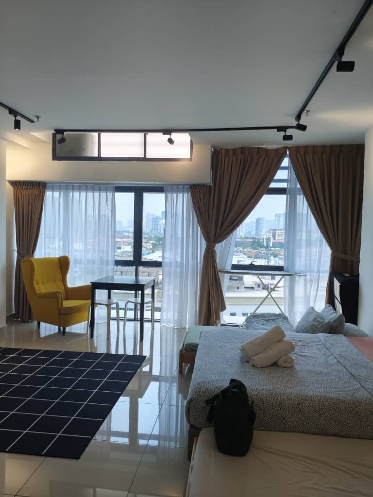 ☆Brand NEW Modern & Cozy Studio COMPLIMENTARY ♡♡ COWAY hot & cold water ♡♡ Instant Noodles Cups ♡♡ Fresh Mint Candy ☆Fully Furnished Studio ●42-inch smart TV with streaming services like Netflix ●Fully equipped kitchen with hood & hob ●2 doors fridge ●Queen size bed ●Lazy sofa ●Dining table & chairs ●Coway Water Dispenser ☆ Practicalities ●Free 1 parking lot and high-speed Wi-Fi, adding to the convenience for guests ☆Facilities ●Swimming Pool ●Swing Chair infront unit door step