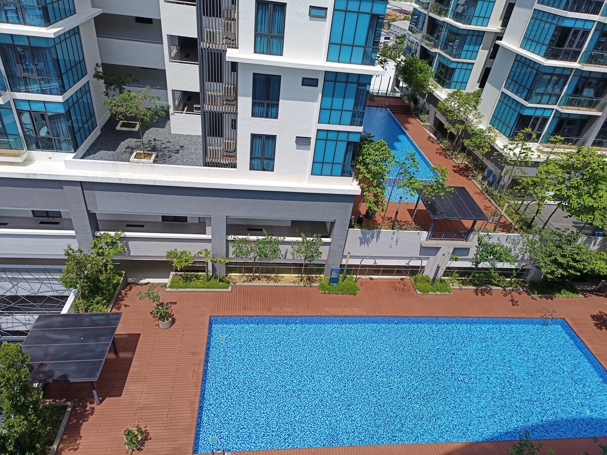 This unit in Pacific Tower Petaling Jaya by Shamrock - 2 mins walk distance to Rapid KL Bus Station, T787 Line - 5 mins walk to Jaya One, Aeon Big, The School and Columbia Hospital PJ - Easy access to LDP, NKVE, KESAS and Federal Highways. - Fully furnished with aircond, WIFI (100mbps), TV+TV Box, beds, water dispenser, washing machine and etc. - Simple cooking allowed with fridge, mircowave, induction cooker, small pots and pans. - Other facilities include swimming pool and garden deck.