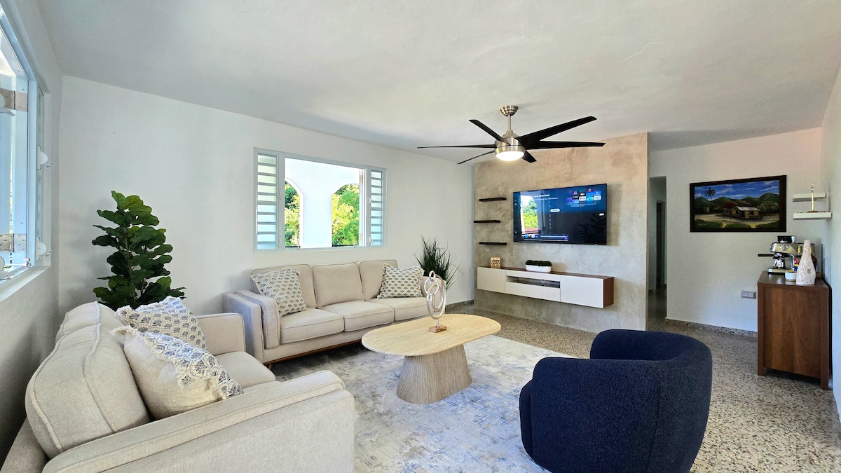 This unique apartment has a style all its own. Conveniently located in the heart of Jayuya, PR. View and walking distance to the town square and Market plaza. It is fully equipped, it has two internet options and a generator in case of power outages.