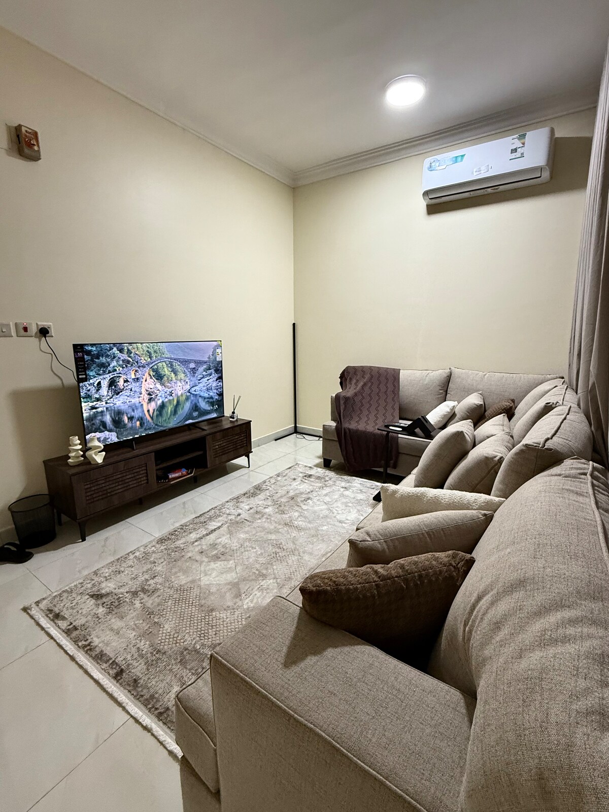 Looking for unlimited comfort, deep sleep without disturbance You can find all of this in this unique residence, as if you were at home, to create a comfortable and quiet experience with all the services you need, from cold air conditioning and a refrigerator to put cold drinks, a microwave to heat snacks, and a heater to make the most delicious coffee and tea, in addition to a large screen to enjoy the most wonderful movies. Our residence is close to services such as a supermarket, a toast restaurant, and a barber shop. It also has a large unique view. We are sure that after experiencing our residence, you will strongly want to visit again. You are welcome♥️♥️