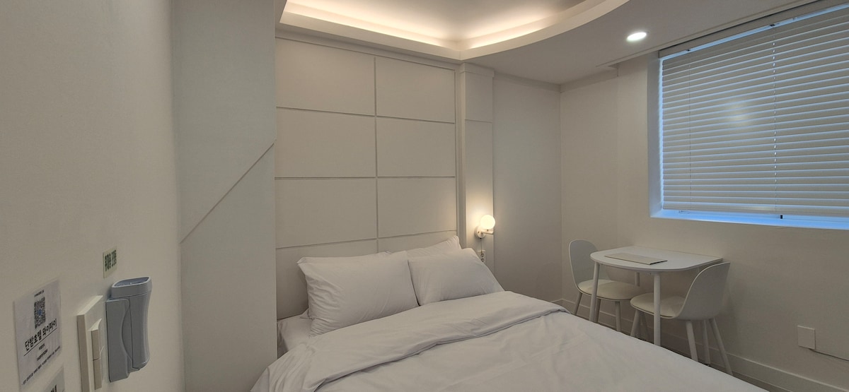 Hutis Stay Double Room is a newly built lifestyle business hotel located in front of Anhungji Lake in Icheon, ideal for both business and leisure travelers. The room includes a queen-size bed, kitchen, washing machine, and high-speed Wi-Fi, suitable for short or long stays. A 55-inch smart TV with Netflix is provided for entertainment. Enjoy relaxing lake views from the window. Guests can use the fitness center on the 3rd floor. Free parking is included, with no additional fees.