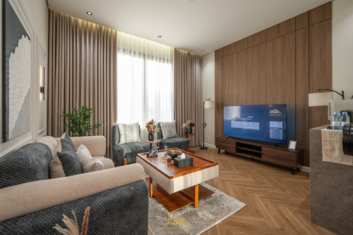 Relax in this quiet and elegant private residence with a spacious and wide view of the city and forget your worries about cleanliness and comfort Modern furniture with multiple lighting and complete privacy Private parking inside the building and self check-in Excellent location 65-inch smart screen with subscriptions Netflix - Shahid A washer Personal hygiene items and towels for one-time use Electric shutters for windows, soundproof and lightproof Medical mattress with padding Comfortable sofa 75 m area Close to all services and easy access to: Makkah 50 minutes - Airport 15 minutes - Train 15 minutes - Al Jawhara 20 minutes