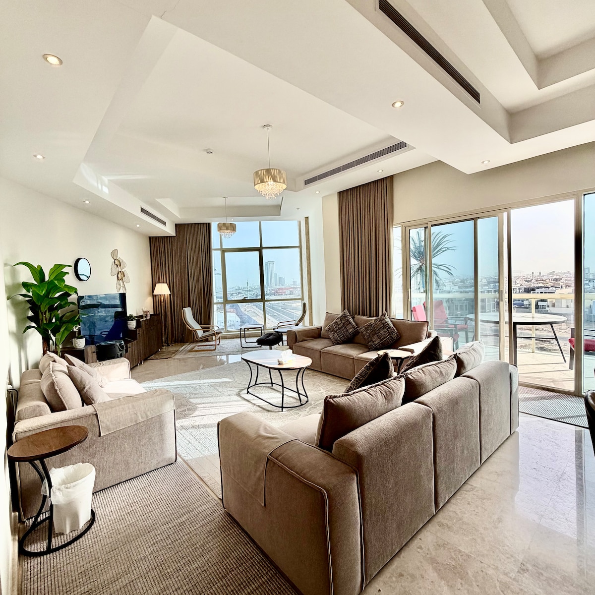 The whole group will be comfortable in this spacious and unique space. It’s near to the best malls, entertainments, corniche & sea walk. The apartment is fully furnished & serviced. The location is 20 mins away from the Airport and less than a 5 minutes walking distance from the beach & shopping malls. There are neighbors around and might get exposed to sounds.