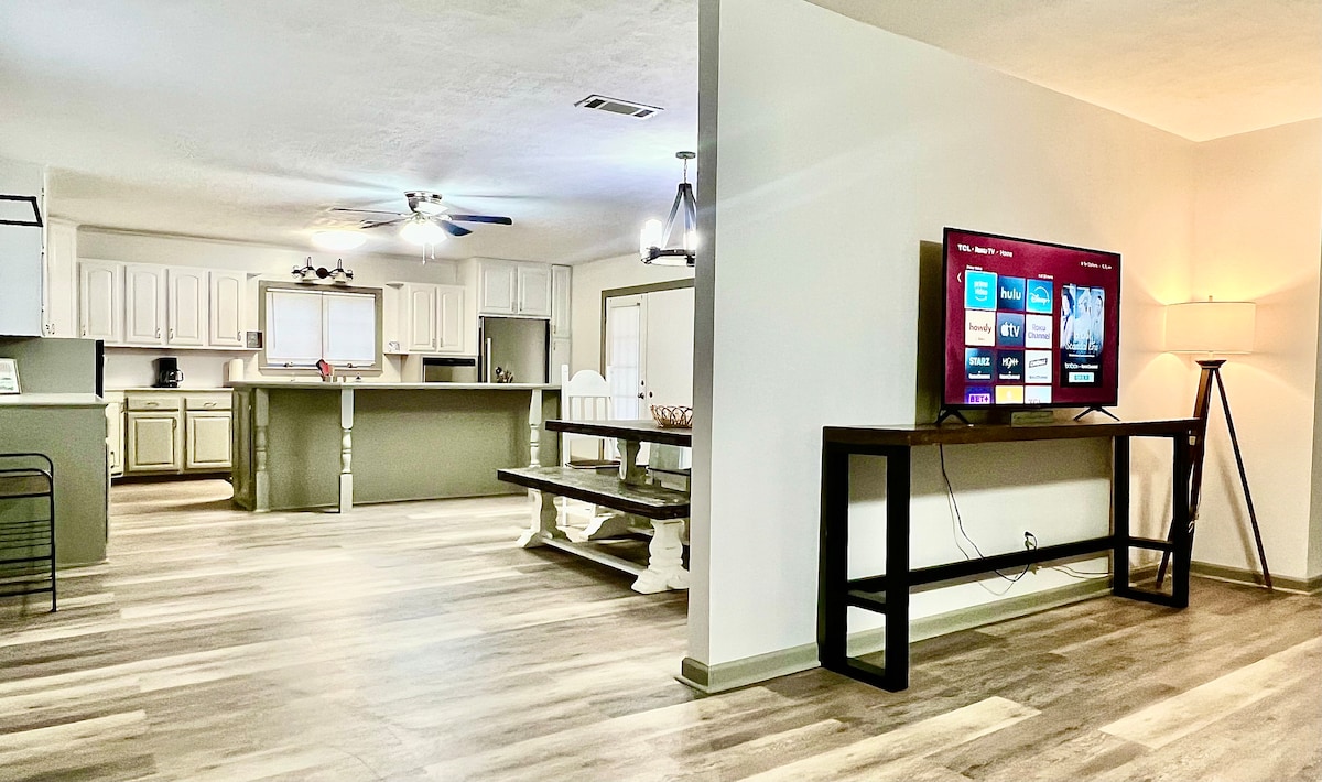 Escape to Magnolia Place, a peaceful modern farmhouse in the quiet countryside. Perfect for families, couples, or solo travelers, it features a spacious open kitchen, cozy living spaces, and a private pond for fishing or morning coffee by the water. Enjoy natural beauty, starry nights, and the slow rhythm of rural life. With thoughtful touches and tranquil vibes, this charming retreat promises a relaxing and memorable stay.