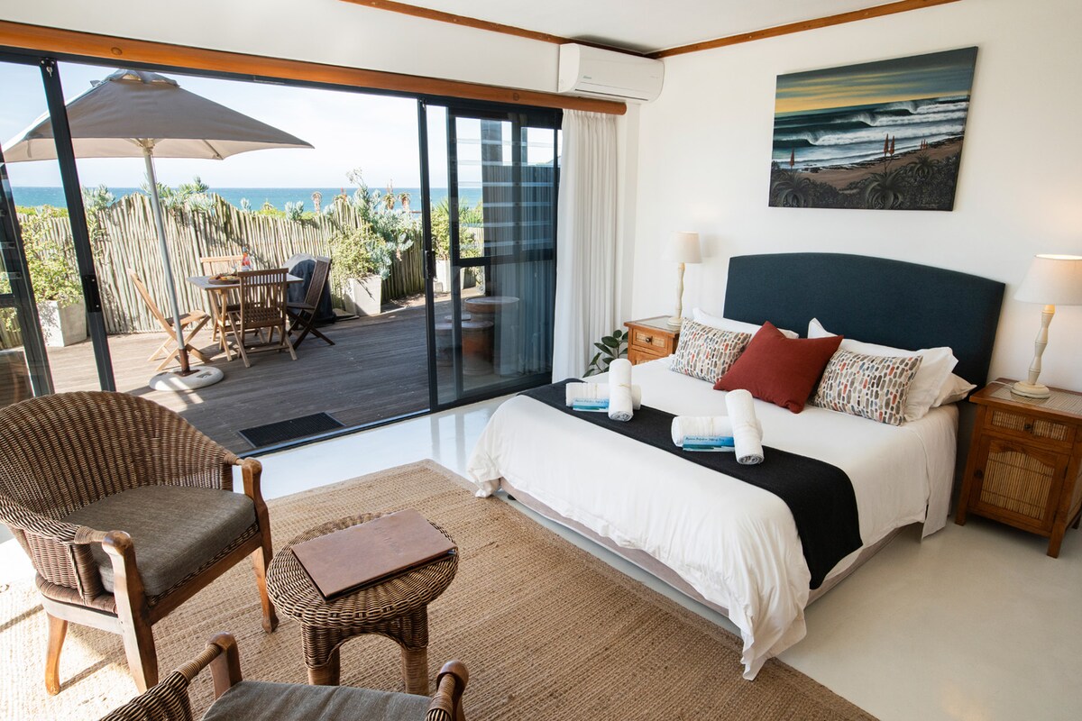 This luxury beachfront property is as close to Supertubes as you can get, where 4 of the 5 rooms have amazing sea views! 5 En-suite bedrooms, a lounge, kitchen and deck area with braai all right on the beach. The lounge opens straight out onto the deck and there's more than enough space for the whole family. Each airconditioned room has its own bathroom with shower, toilet and basin, and there's select DSTV in each room too! Proudly pet and child friendly. Serviced daily.