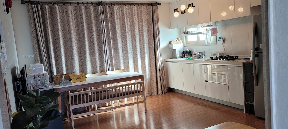 [30 minutes to airport / 10 minutes to Hamdeok / 3 bedrooms / 5 air conditioners / tumble dryer / baby essentials] Cornerstone Stay :)
