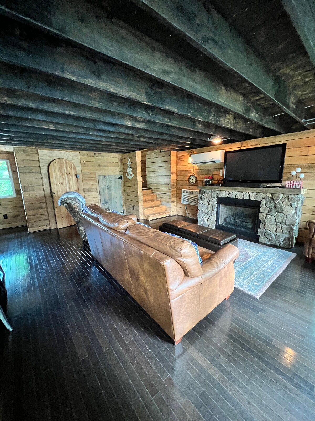 Unique rustic cabin on a quiet cove of Lake Murray, a 500,000 acre lake in central South Carolina, perfect for fishing and all water sports. The cabin will sleep 4 adults or 2 adults and 3-4 children. The top loft bunk might be a bit claustrophobic for an adult. The doorways upstairs are low clearance, can be a head bumping hazard for anyone over 5'10 or so. Bed linens, bath and kitchen towels are provided. Lexington County License #2500880