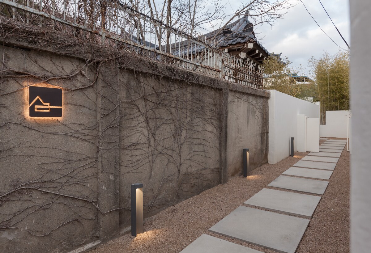 Homeo - A new breath of an old house The 90-year-old red house was reborn with a modern sensibility. Healing your mind while staying in 'Homeo'. Quiet alley of Weridan-gil, Jeonju, A red house with a story of an era Now it's just one complete shelter. Living room & dining area Minimal structure completed with a mix of wood, European beauty, and glass Private heated pool & yard Jacuzzi-style bathtub in a traditional hanok yard Four-season healing time under the sun Bedrooms Two-story structure with quiet wood grain and ceiling structure 2 independent bedrooms and modern sleeping space Reinterpretation of a 90-year-old Jiksan house Pets allowed (based on 1 small dog) Private hot water pool/jacuzzi/yard space self check-in, unmanned operation Equipped with large TV, Bluetooth audio, Nespresso machine, etc. For travelers with pets Homeo encourages you to travel with your pets. Quiet yard, non-slip floor, private structure This is the perfect space for a special trip.